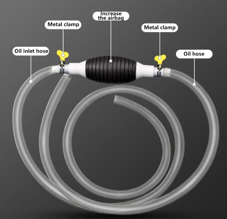 Ideal for emergency gas transfer, it can transfer any liquids like gasoline, oil, water, beer, and so on. A good tool at home for multiple usages.