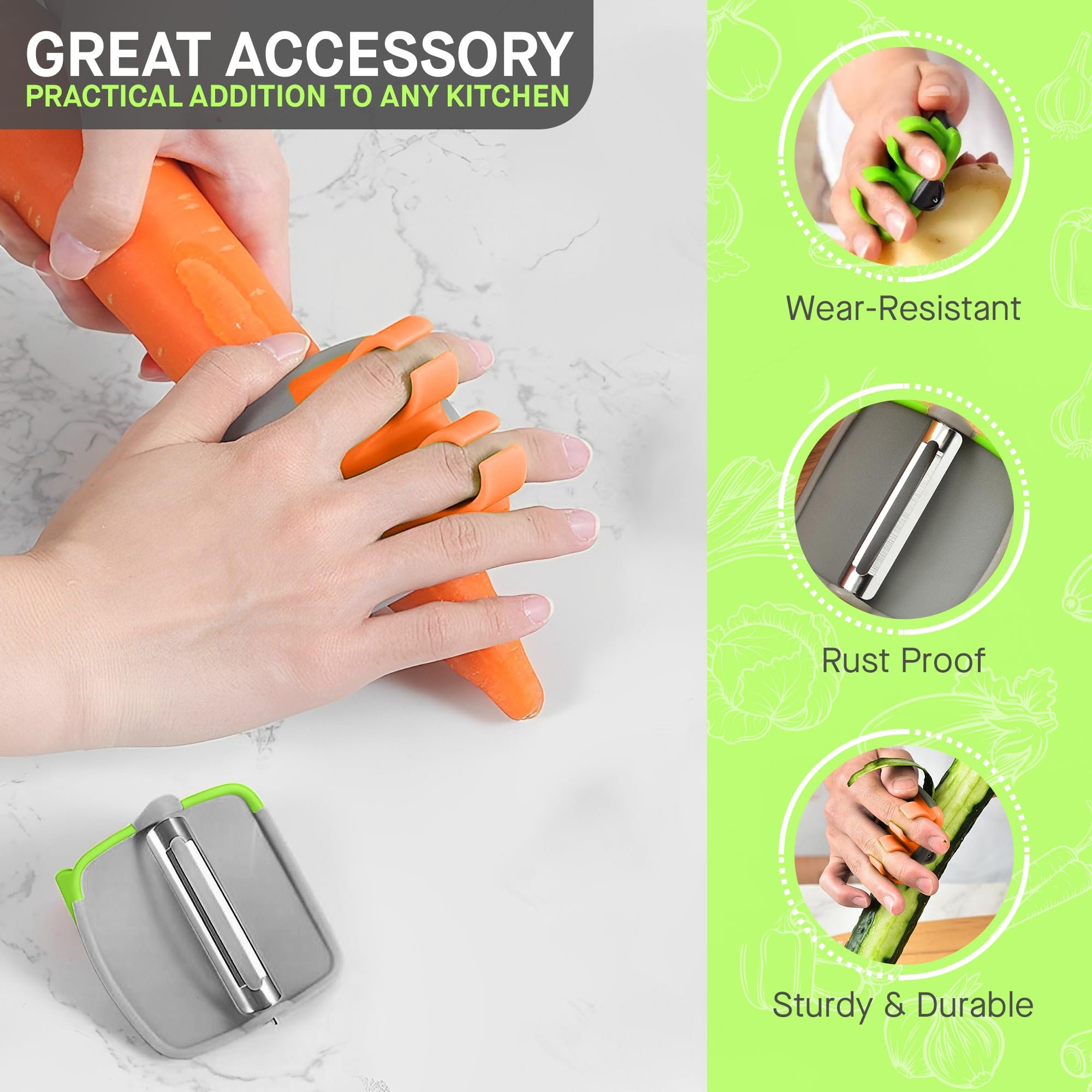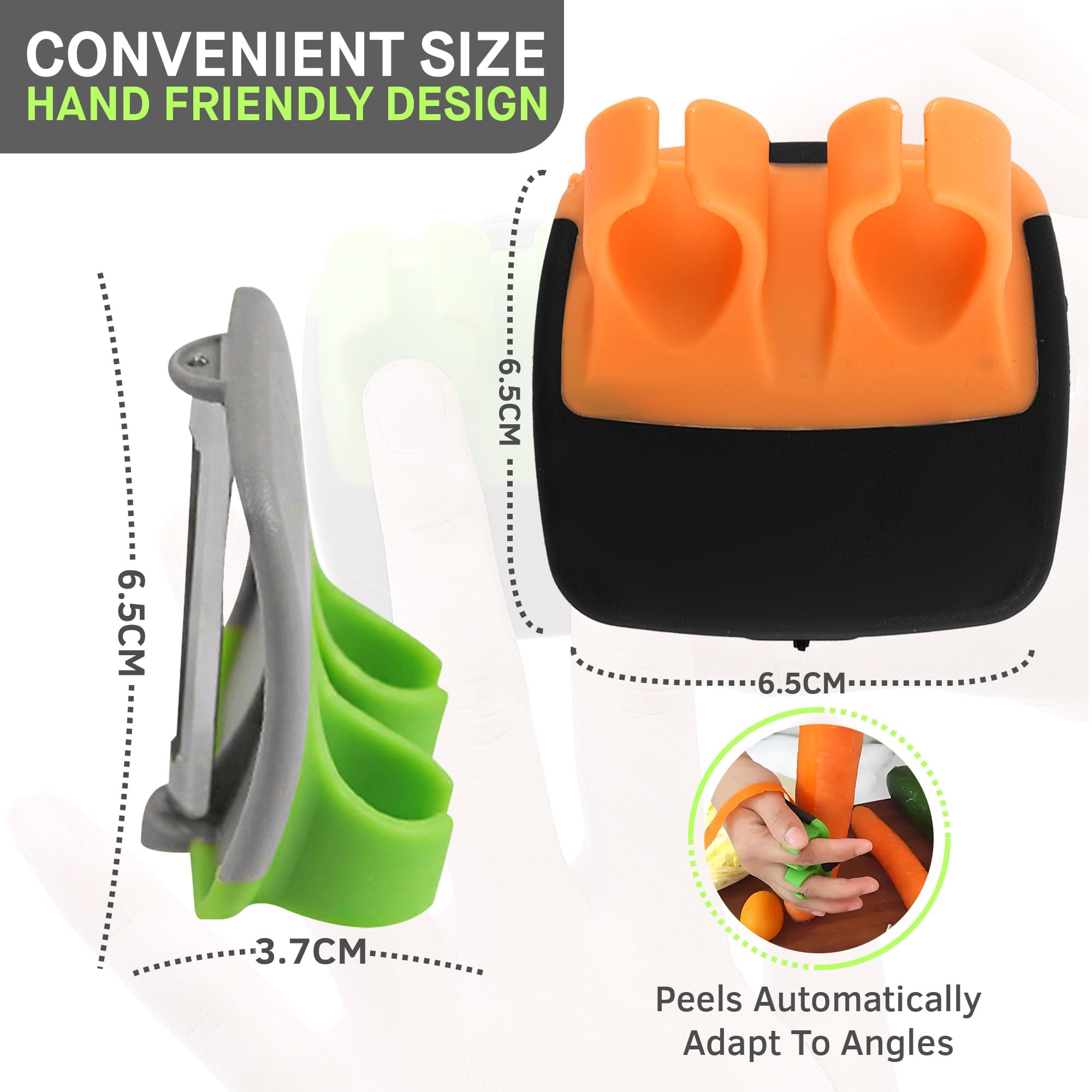 Easy to Clean & Store: The compact design of our vegetable finger peeler and palm fruit peeler makes them easy to store in your kitchen drawer or hang on a hook for easy access. The stainless steel blades are easy to clean, ensuring your peelers remain hygienic and ready for use.