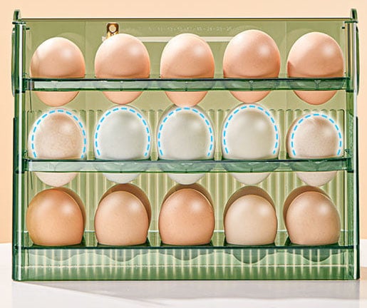 🥚Multi-layer design: The egg organizer is designed with three layers, each layer can hold multiple eggs, making full use of the storage space, easy to store and access, saving the hassle when storing eggs.