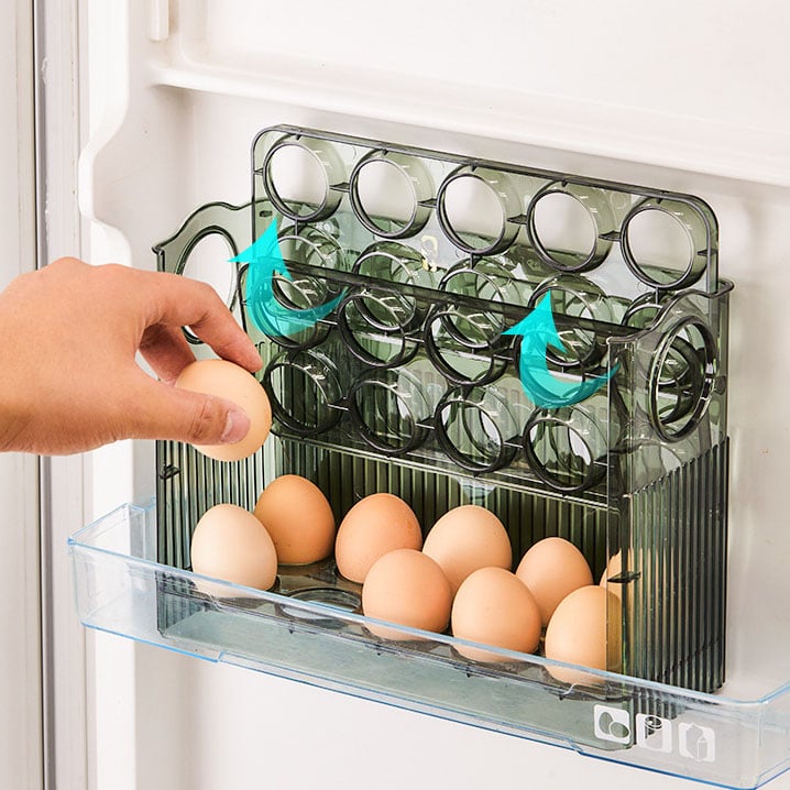 🥚Auto-flip: The holder of the box has an auto-flip function. When a layer of eggs is removed, the holder will automatically flip over to facilitate the removal of the next layer of eggs, which is convenient and saves time and effort.