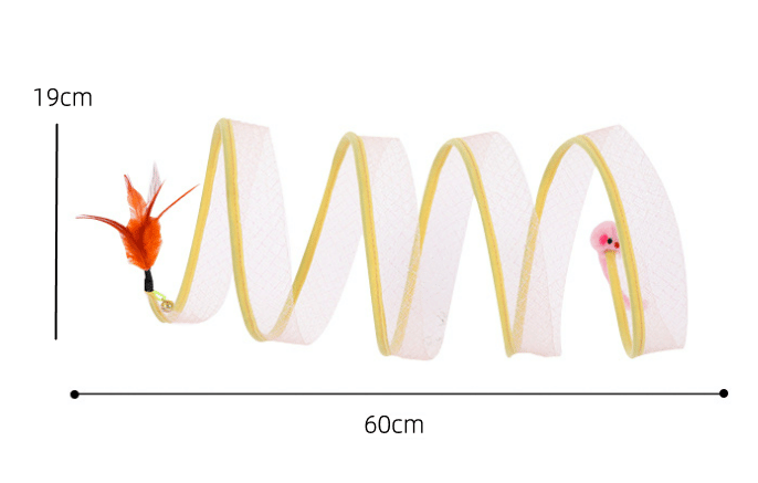 Stretchy shuttle tunnel, so that cats can be free to travel through it, both sides with the cat's favorite mice and feathers, respectively, can make your cat to this toy more love. Not only is it a tunnel, but it can also be used as a teasing stick.