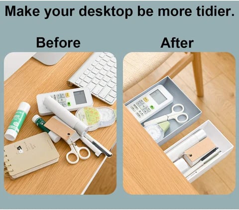 Convenient-Perfect invisible solution for storage pens phone supplies under your desk. The drawer pencil tray is suitable to install under the desk, you can paste them anywhere to make the most of the space.