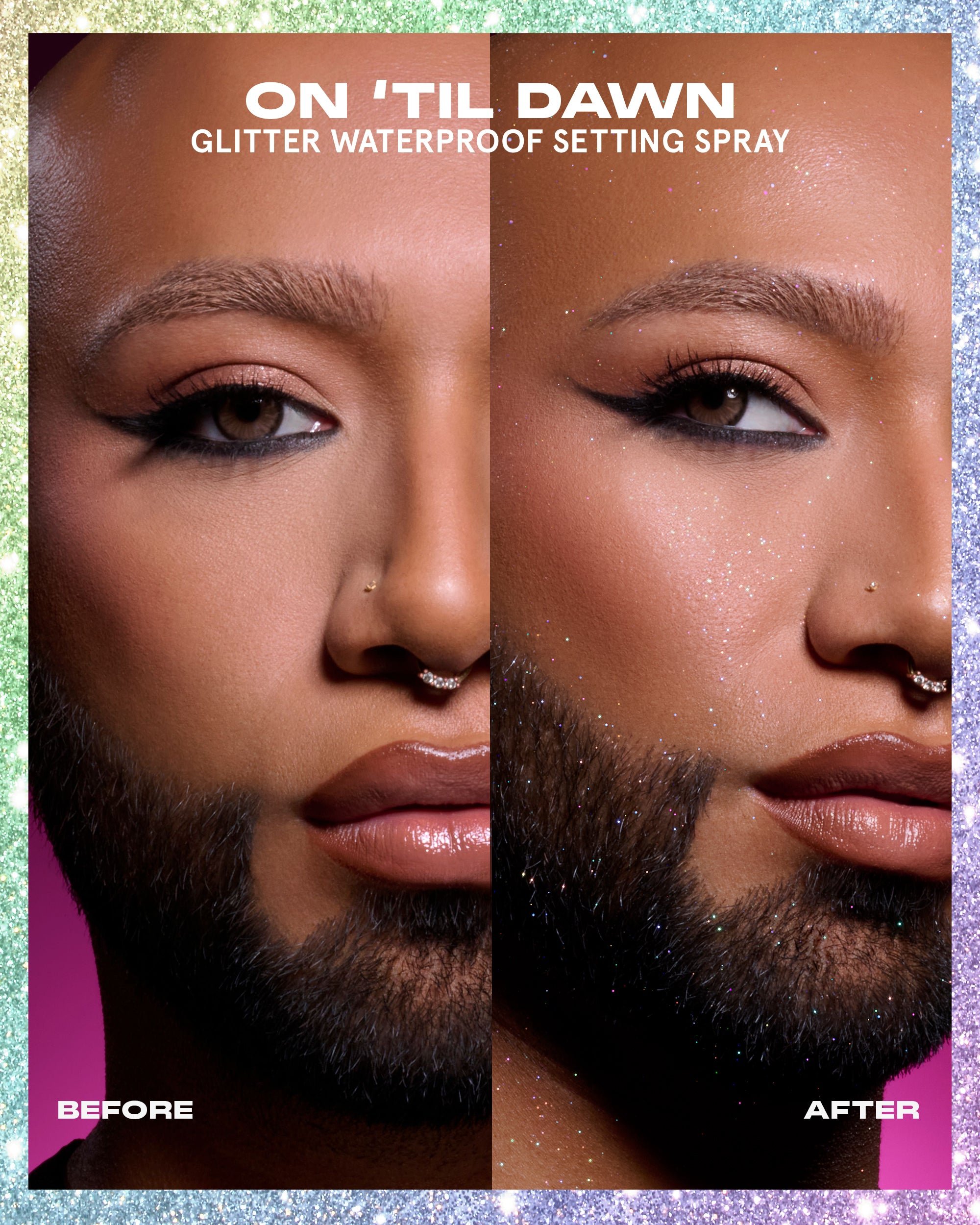 On ‘Til Dawn Glitter Setting Spray is non-comedogenic. Plus, she’s formulated with green tea extract and witch hazel to help control oil and visibly tighten pores. Great for oil and breakout-prone skin!