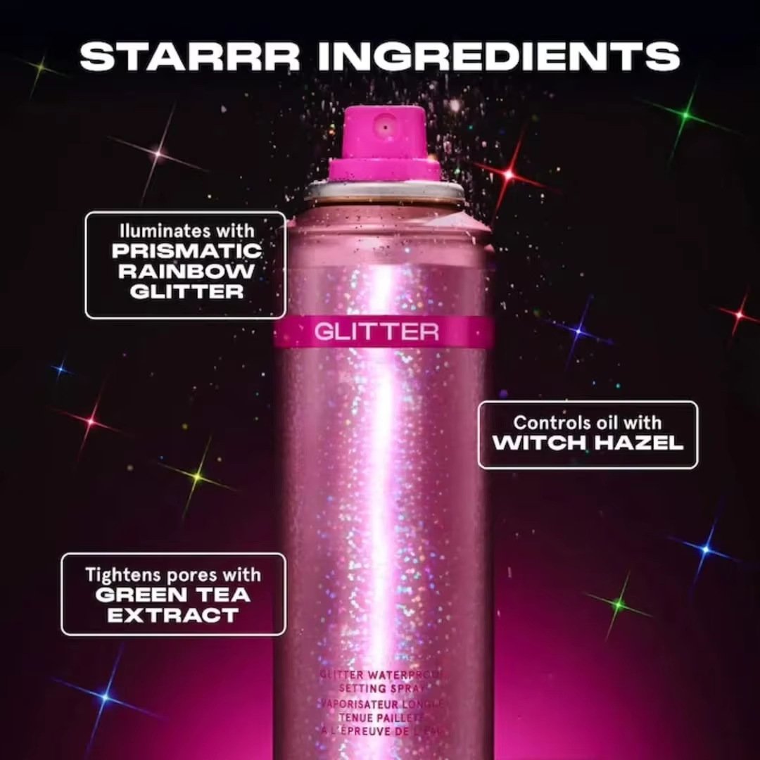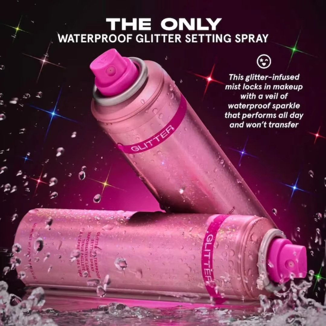 - INNOVATION: The ONLY waterproof glitter setting spray of its kind, safe to use on the face.