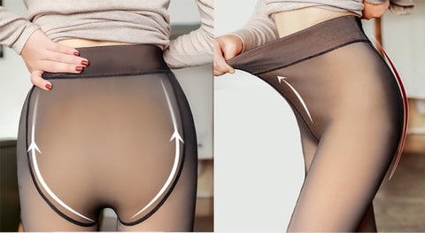 Our Skin Toned Translucent Pantyhose is innovative. It looks translucent and slim from the outside but fill with warm fleece in the inside.