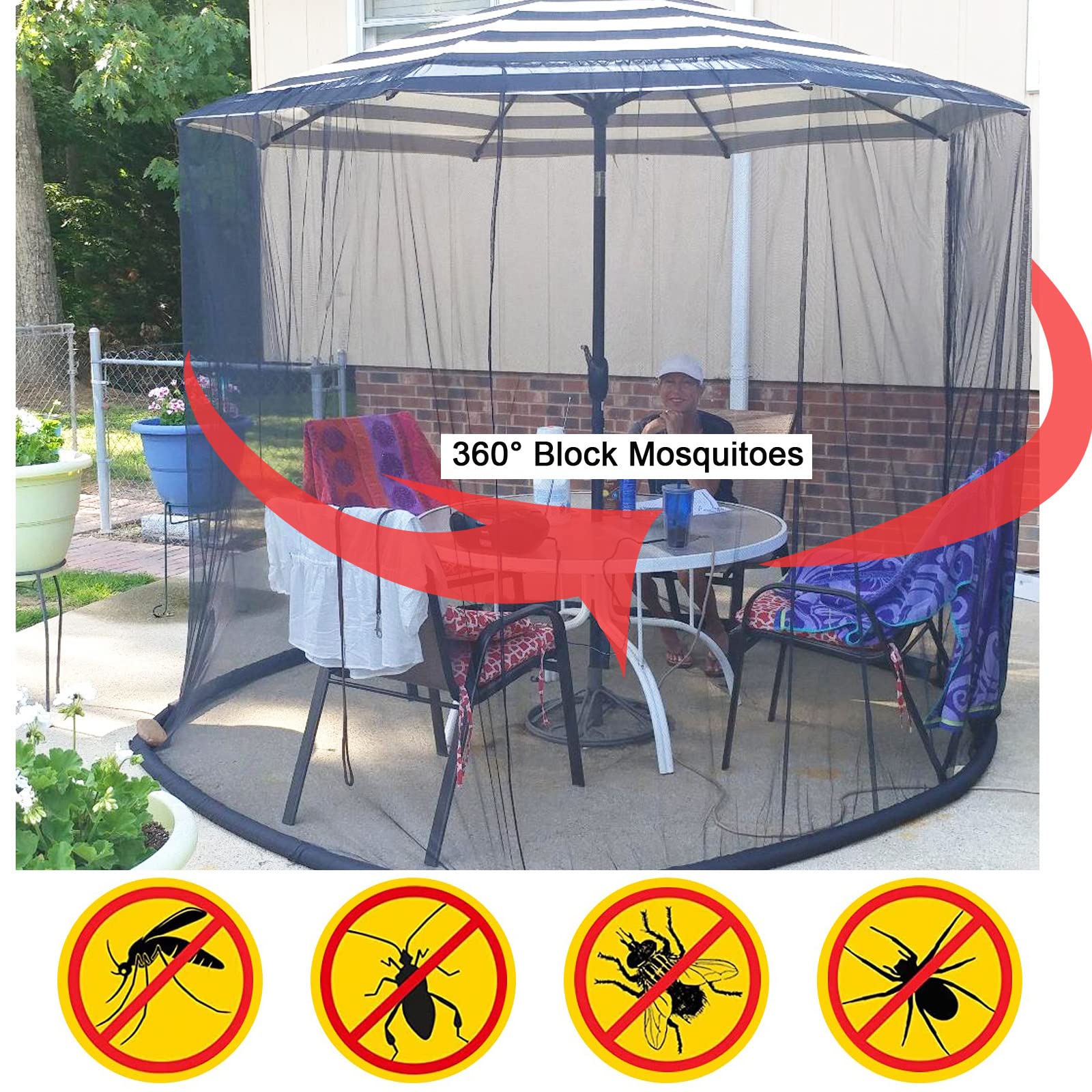 2024 Increase the Coverage of the Umbrella Screen: A drawstring at the top is easy to adjust the umbrella mosquito net to fit the round table umbrella with a diameter of 7.5-10ft or square umbrella with a side length of 8 feet . And the maximum applicable height is up to 7.5ft. Can accommodate 7-9 people. (Notice: the umbrella and chairs shown in the pictures are not included in the package)