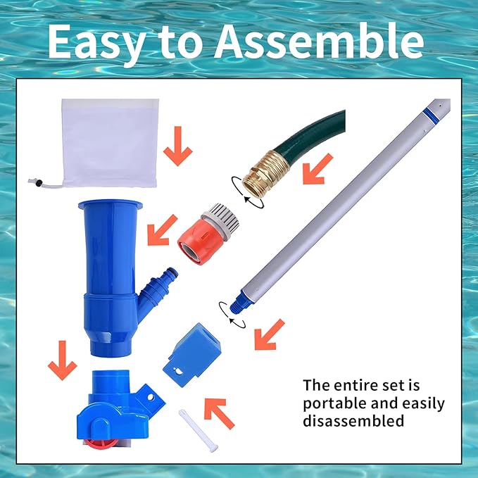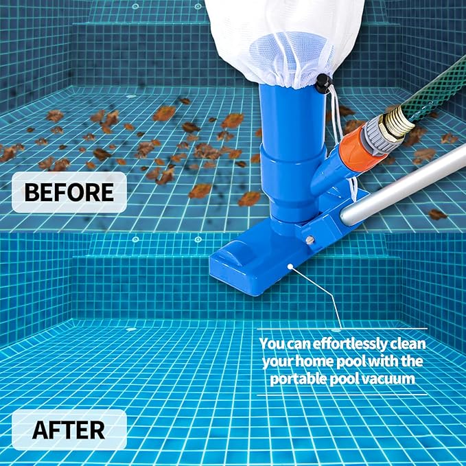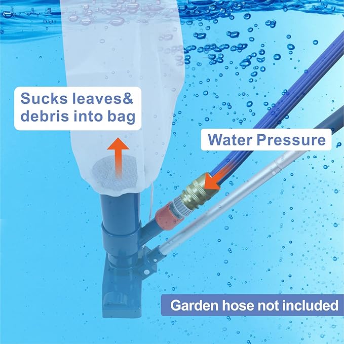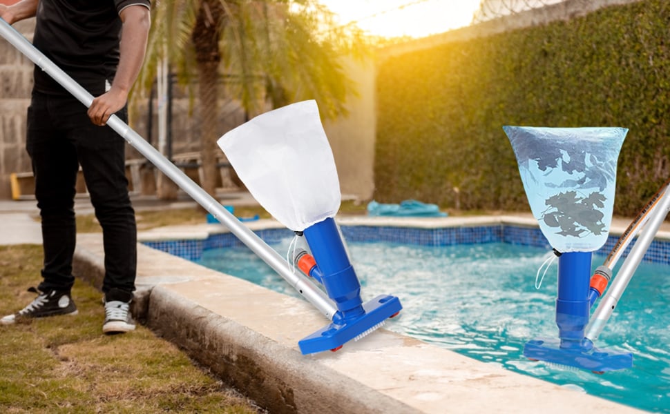 Enjoy a Clean Pool --- Professional pool cleaning tools, Vacuum cleaner head with brush ,The vacuum can suck water, sludge and sediment. The garbage remain in the collection bag, and the water will flow back into the pond or pool. Keep your pool neat and clean for a long time.