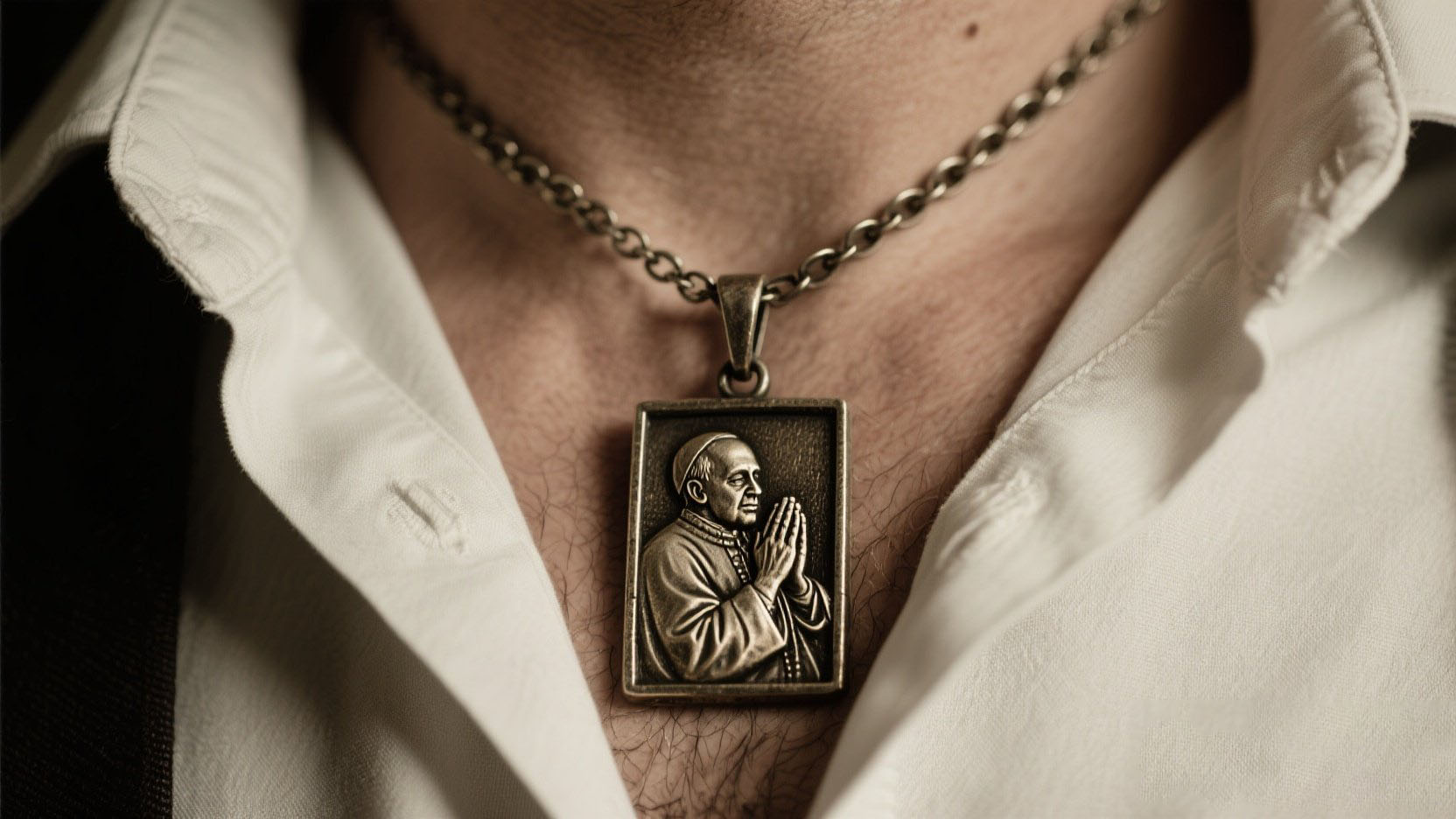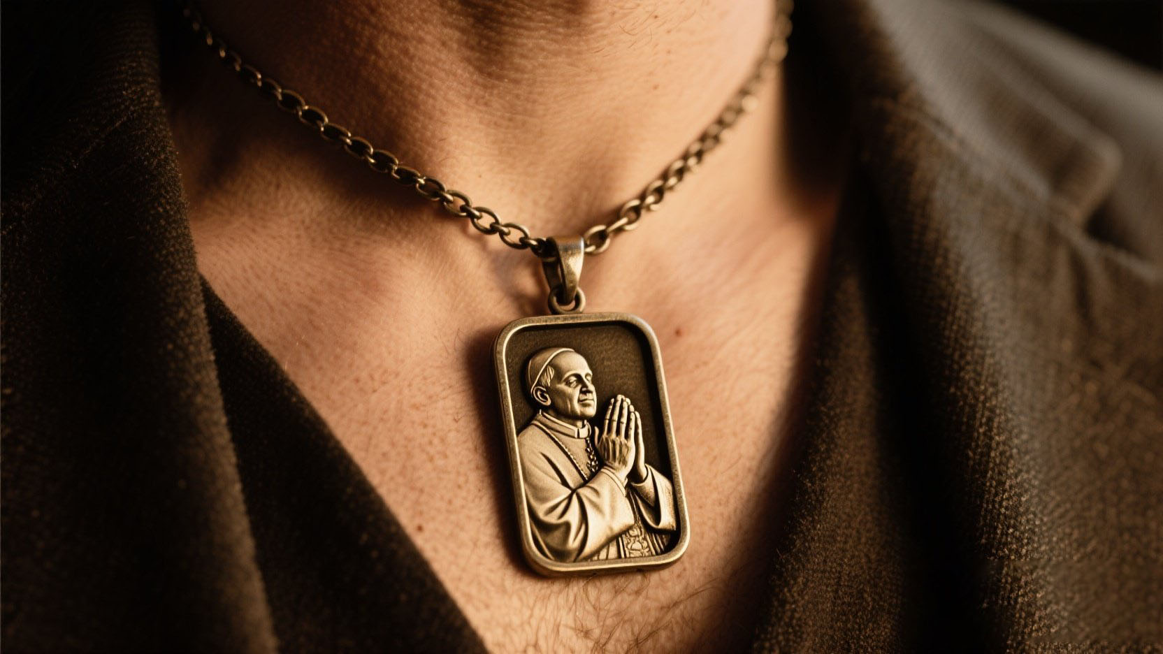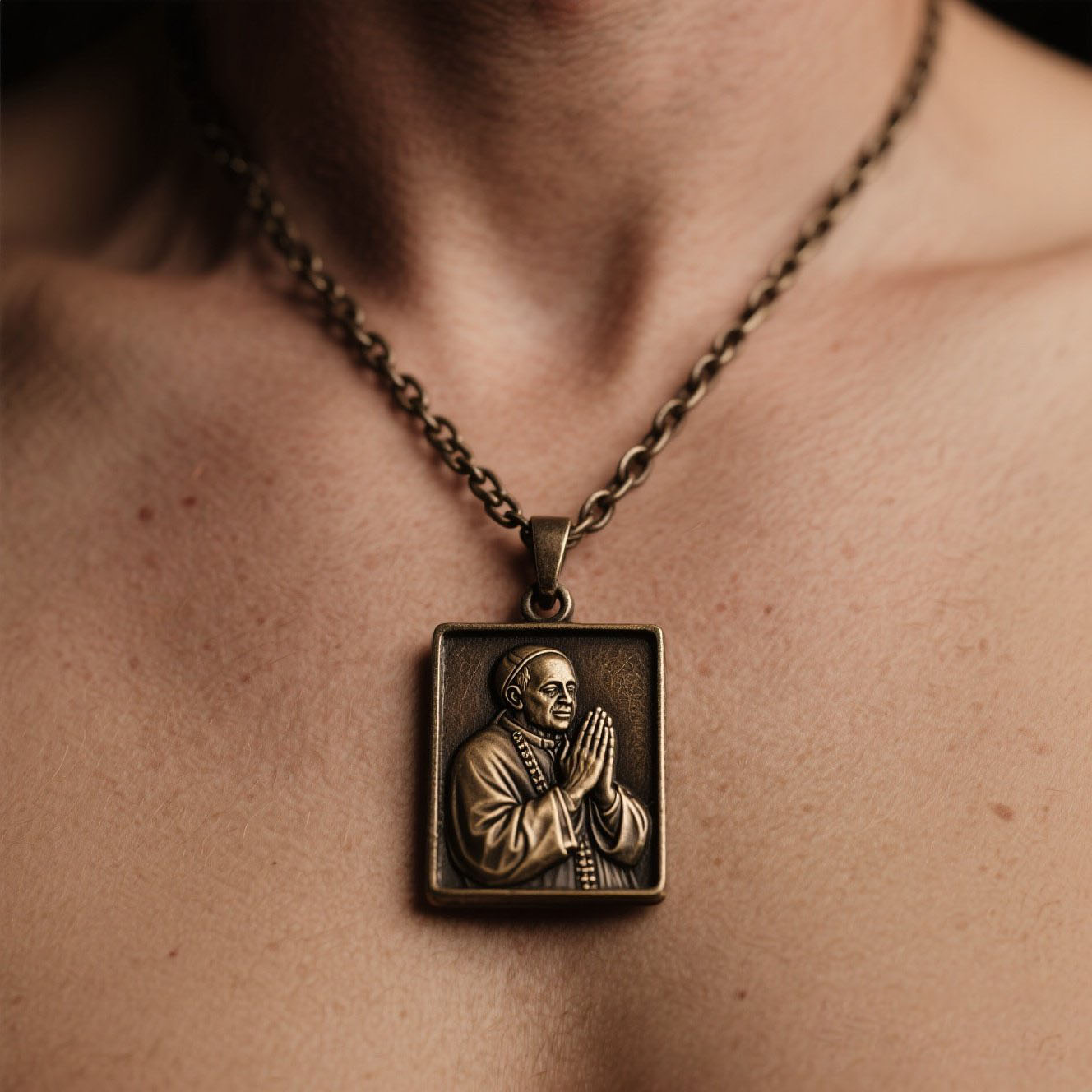 ✔️ Classic Antique Bronze Finish: With a timeless chain and rectangular pendant that suits both men and women.