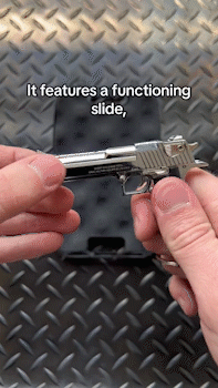 With a working trigger, slide action and last round bolt hold open it's practically the real thing except it is 4 times smaller.