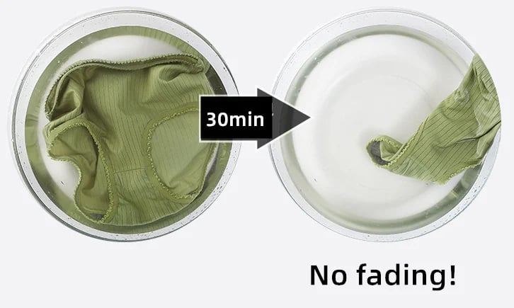 Our underwear undergoes strict color fastness testing before dyeing to ensure that it is not prone to fading. The dyes we use are environmentally certified and are dyed using professional techniques and processes to ensure uniform, long-lasting, and fade-resistant coloring. In addition, to maintain the color of the underwear, we recommend using low-temperature water and neutral detergent when washing, avoiding exposure to direct sunlight and mixing with other clothes to maintain the color and quality of the underwear.