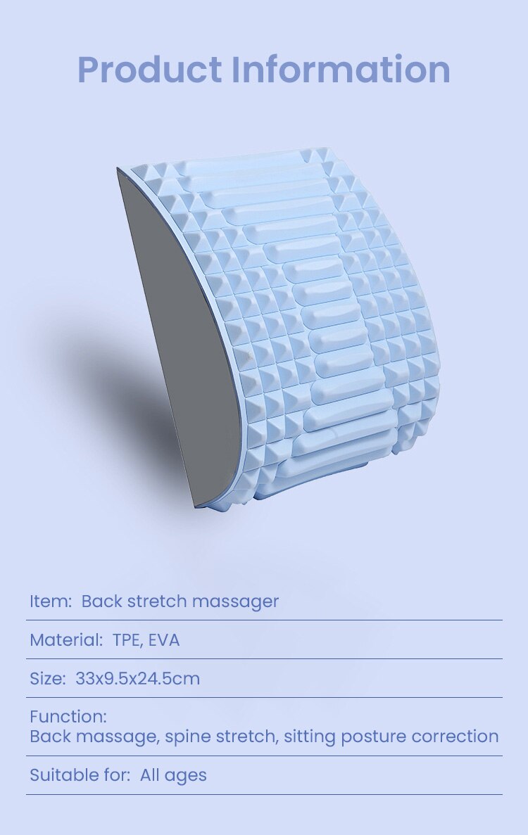 Support your back needs, our back cracking device is carefully designed with 109 massage points to act as a self-massager. The unique massage point arc shaped design effectively reaches deep and stretches upper + lower back muscles completely. the contour along the center was designed specifically to help align the spinal cord when in use.