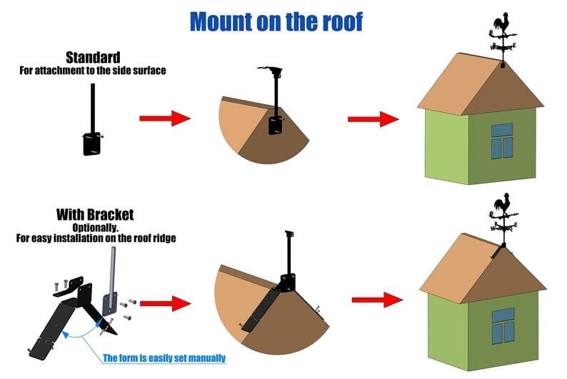 Each weathervane has a special roof mount. This size weathervane is ideal for your home, garage, cupola, barn, lawn, patio, garden, backyard, or gazebo.