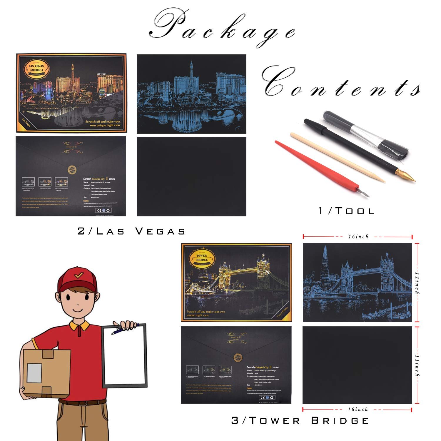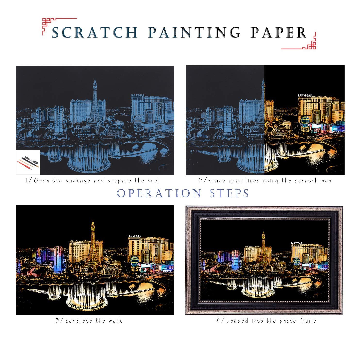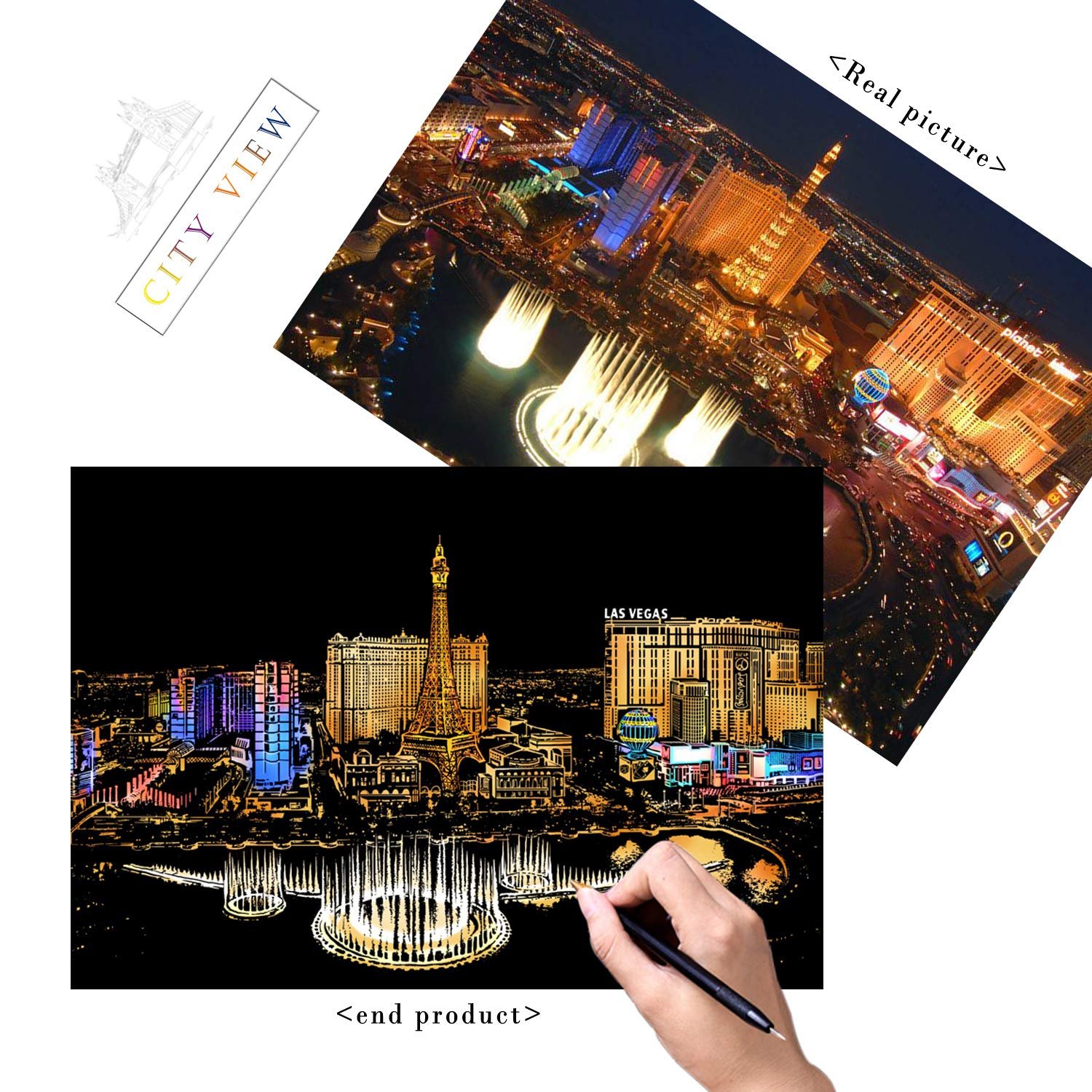 Effortless Masterpieces in Minutes: Watch vibrant colors emerge like magic! Pre-printed linocut designs guide your scratching—reveal stunning cityscapes or create your own art. Frame-ready results with zero drawing skills required.