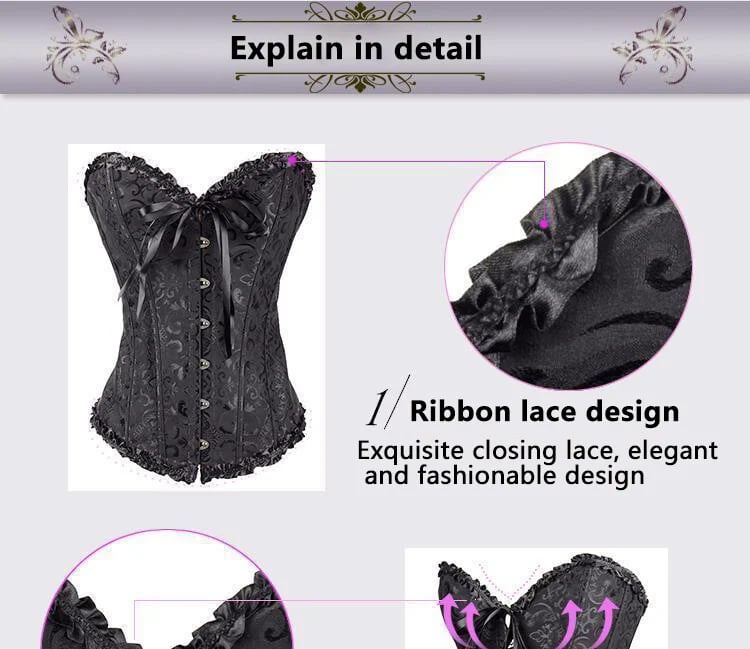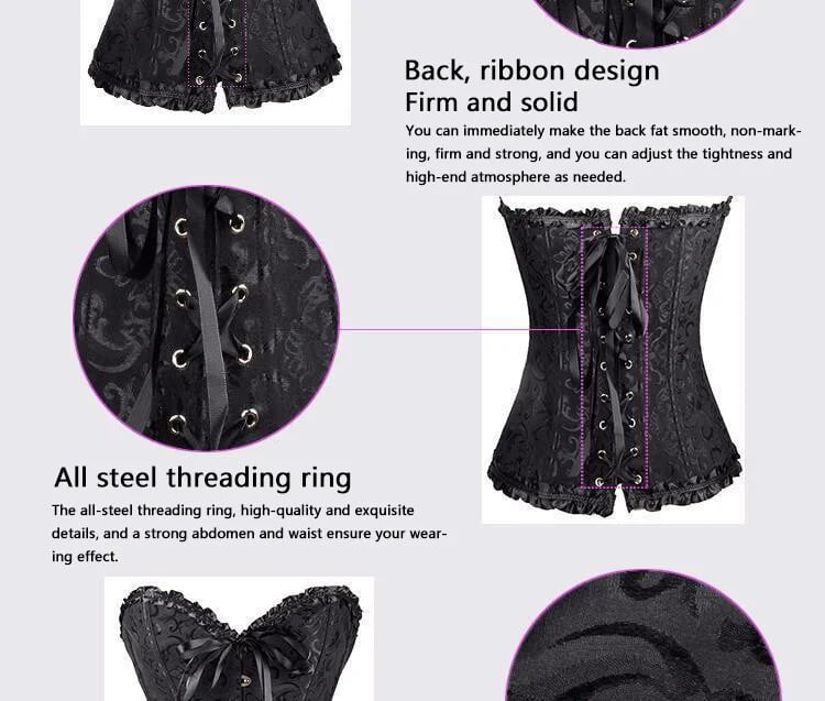 HIGH QUALITY: The fashion corset is made of high-quality satin material & surface brocade, gives your back support, and tummy control, and flattens your belly and abdominal area that helping you to achieve your ideal body shape. Increasing core thermal activity to burn extra calories and fat makes you look good and feel great. This affordable corset can be worn as an outer as well as lingerie to sculpt a perfect hourglass figure.