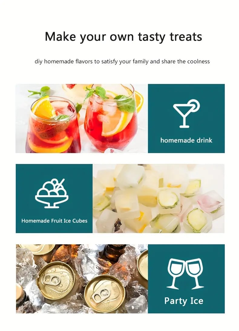 🧊Multi-Purpose - Sized perfectly, this ice cubes can perfectly complement various Iced Coffee Glasses, Cute Tumbler Cup.Tailored for cocktails, coffee, tea, sparkling water, various juices, lemonade, and soda.