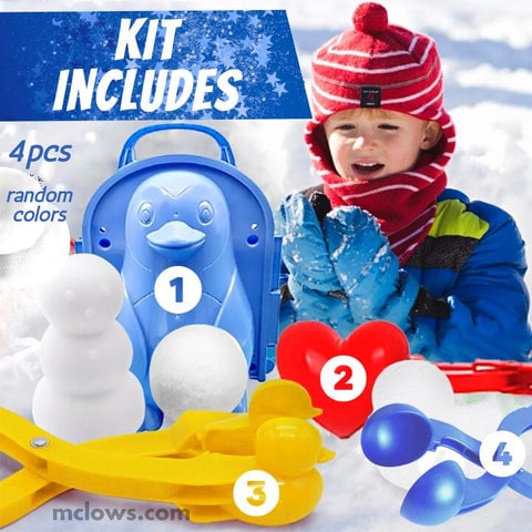 The kit includes a snow duckling maker, a penguin snowman, heart pack as well as a perfect snowball mold. Please note that the colors will be random.
