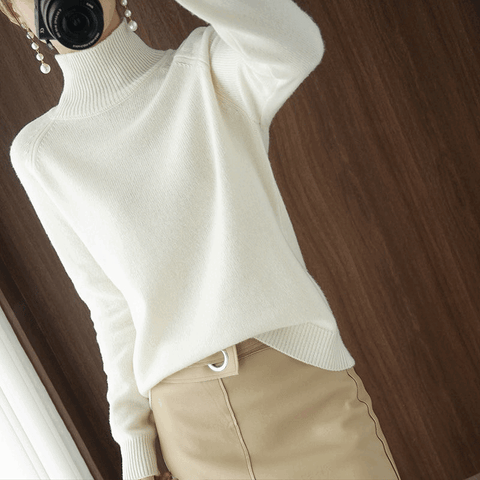 The long sleeves and high neckline make it perfect for cooler weather, and the versatile solid color design can be dressed up or down depending on the occasion.