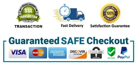 The Checkout Process is Guaranteed to be 100% Safe and Secure with Visa, Mastercard, Amex, Discover, Apple Pay or PayPal.
