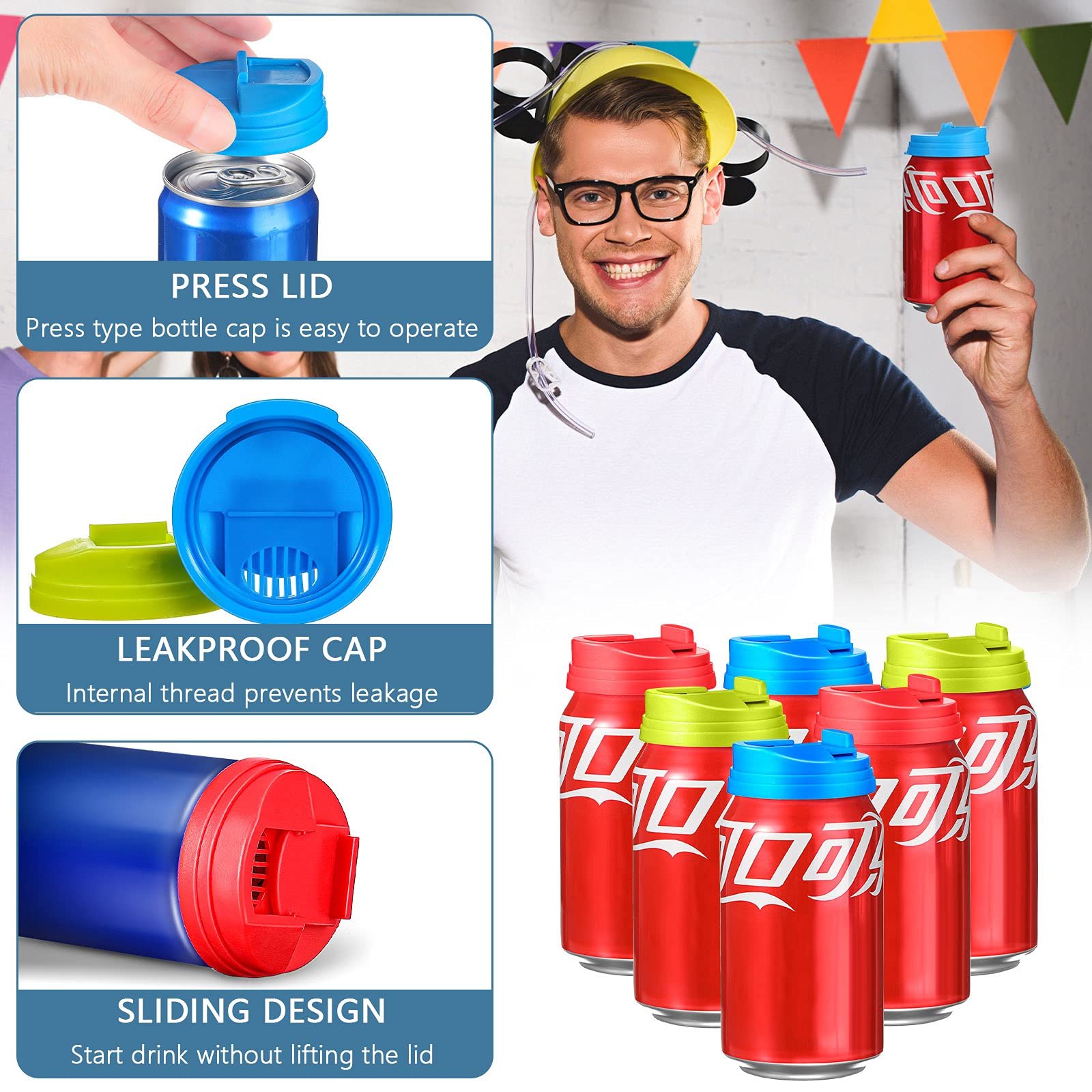 Cokes, soft drinks and beers that are not immediately drinkable can be covered with this practical lid. Keep your favorite canned beverages fresher and bubbly longer.