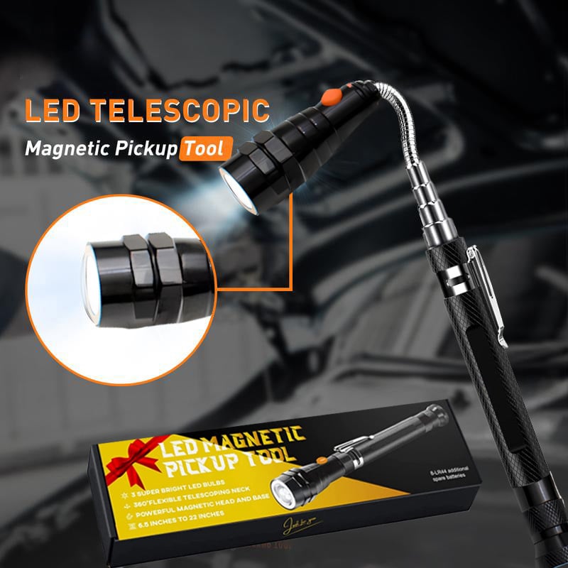 🔧2-in-1 flashlight and pickup tool: Equipped with 3 LED lights to illuminate dark and narrow spaces. Telescopic design with a flexible hose and strong magnets on the head and base.💪