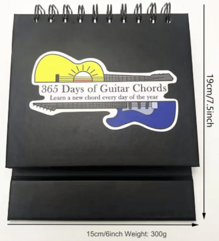 Learn a new guitar chord every day of the year with this 365 day page-a-day calendar. Stand it up on your desk or wherever you practice guitar and learn a new chord every day! This calendar is not specific to any year so you can start using it anytime and keep learning with it year after year! Beginning through advanced players will definitely find new chords inside that expand their guitar chord knowledge and unlock new sounds.