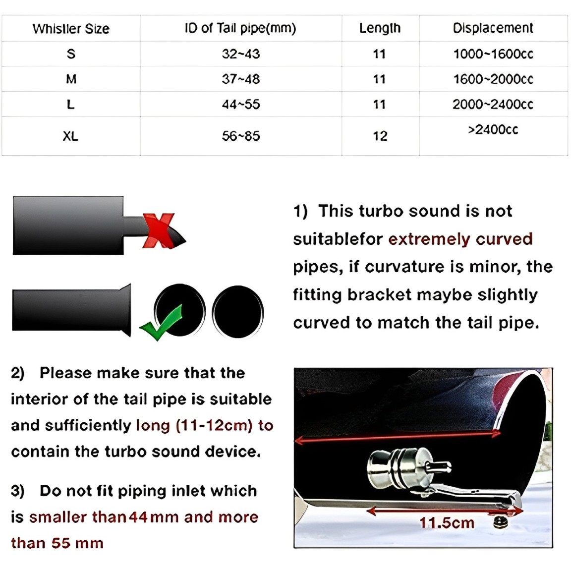 The Tailpipe Noise&Sound Enhancer can perfect fit most vehicles,trucks,motorcycles,dirt bikes and scooters except extremely curved tailpipes.