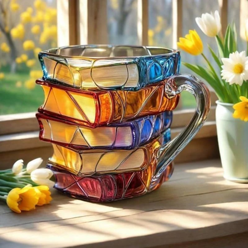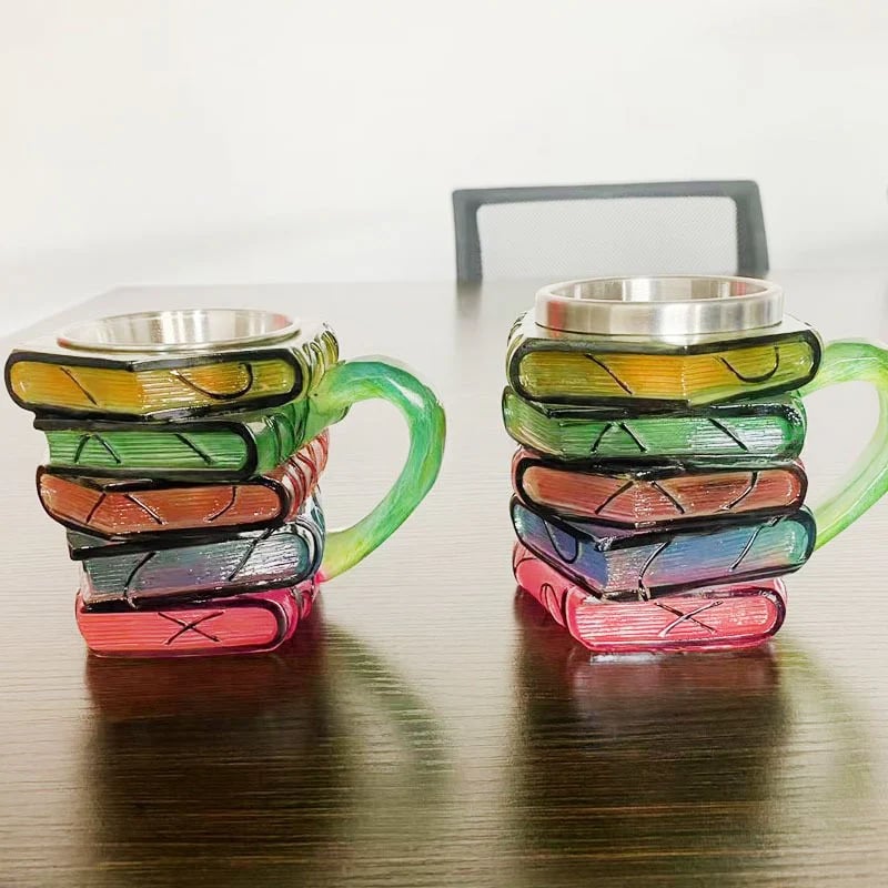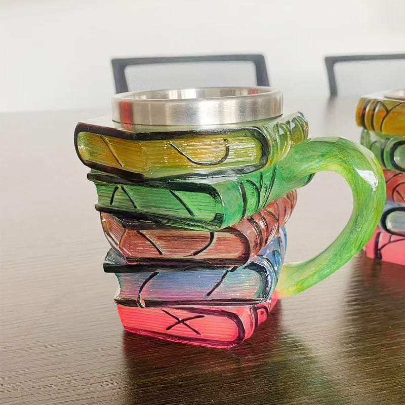3D BOOK STACK DESIGN: A stunning mini-library art piece that doubles as a functional cup. The realistic stacked-book design adds a literary charm to your desk, shelf, or café.