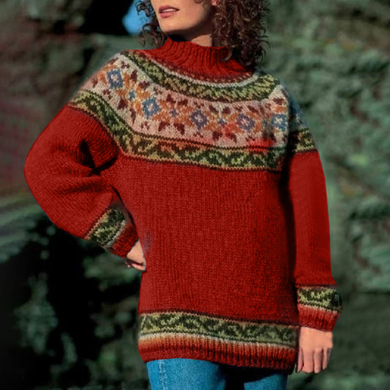 Vintage Turtleneck Long Sleeve Jacquard Sweater