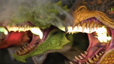 This incredible work of dragon art is crafted out of a durable latex skin, is foam filled, and designed to hang on a wall. It includes a fog machine and LED light that fits inside the head so that your Dragon Legends prop can blow "smoke and fire."