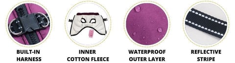 There is a built-in harness in our jacket which easily straps on any leash so, you can enjoy long walks with your furry friend even in cold weather.